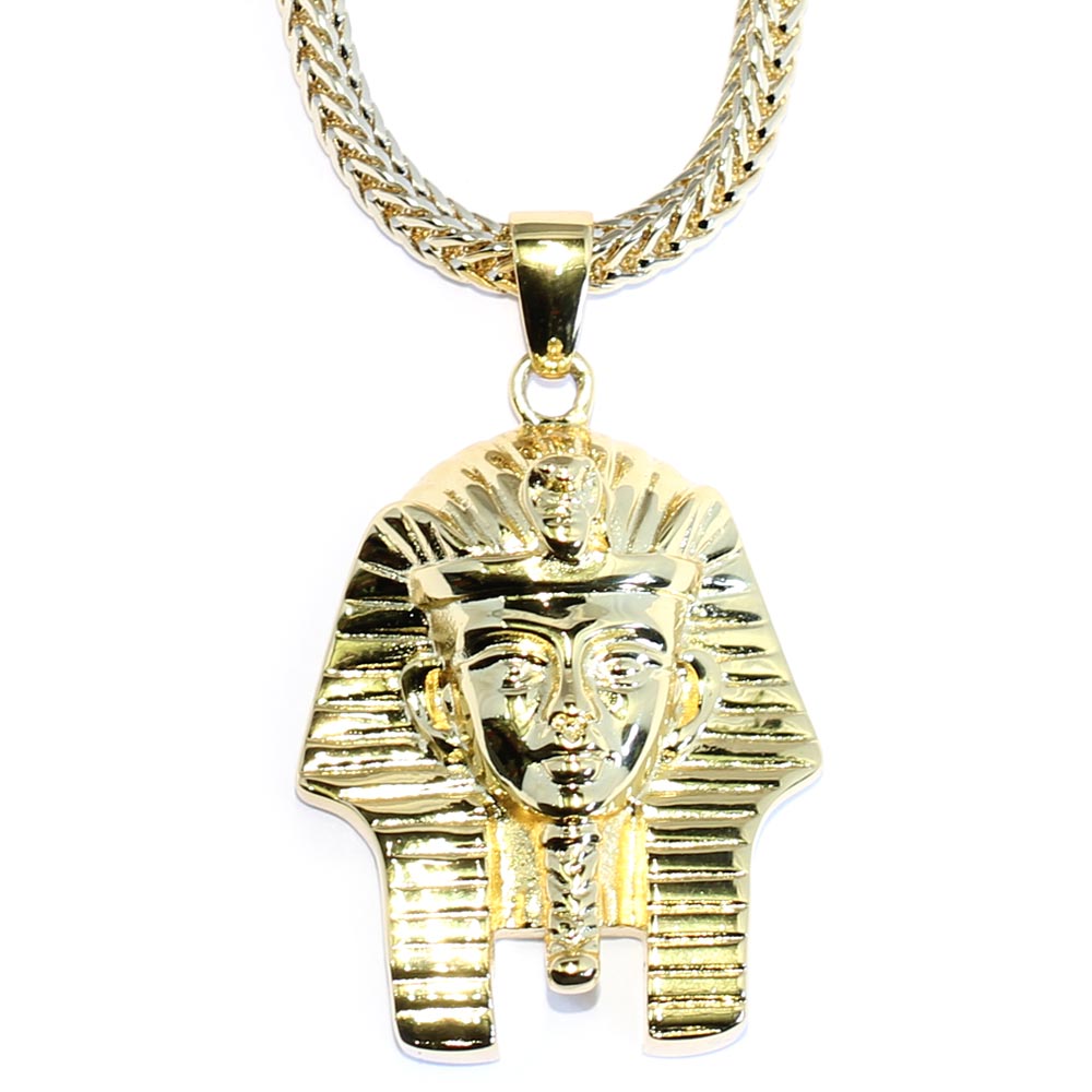 18k Gold Plated King Tut Pendant With Franco Chain Necklace