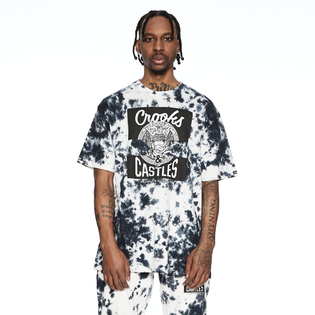 This tee features the Crooks & Castles Mad Klepto design on a tie-dye blank. Made out of 100% combed cotton and pre-shrunk, giving you a comfortable fit.