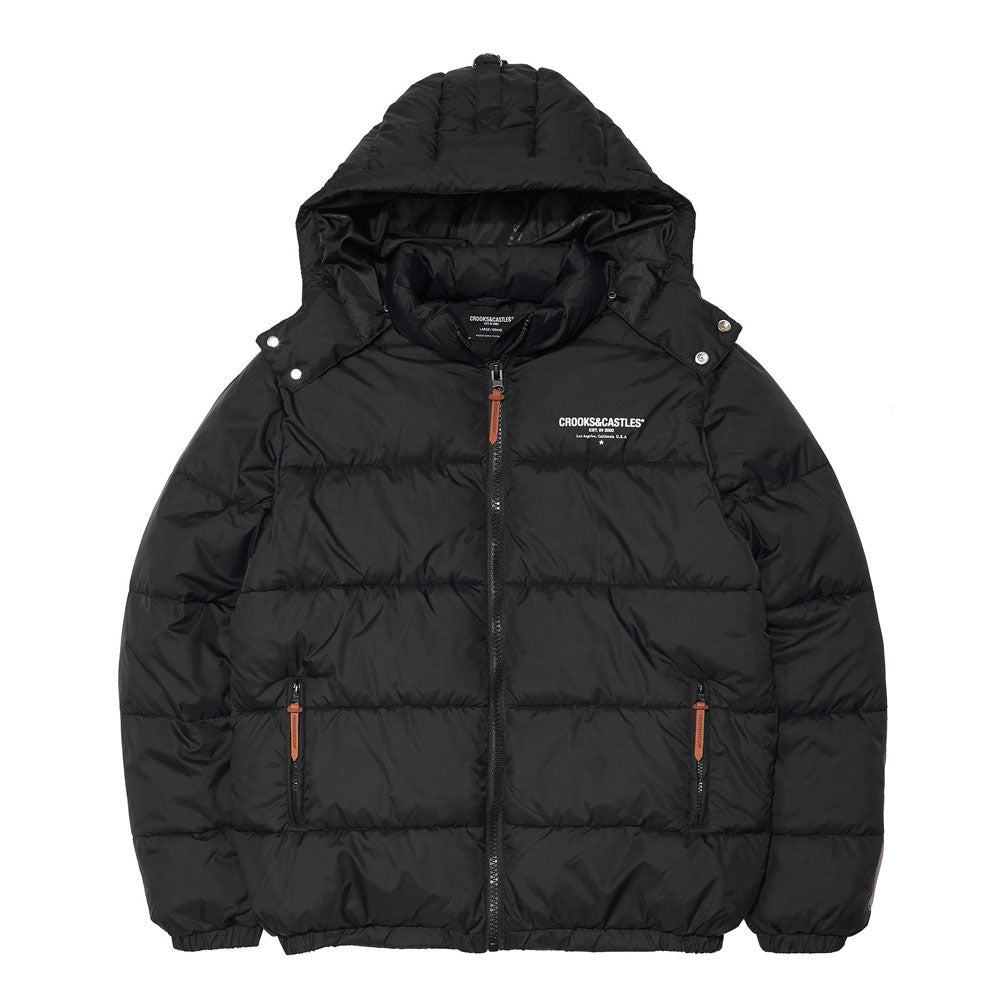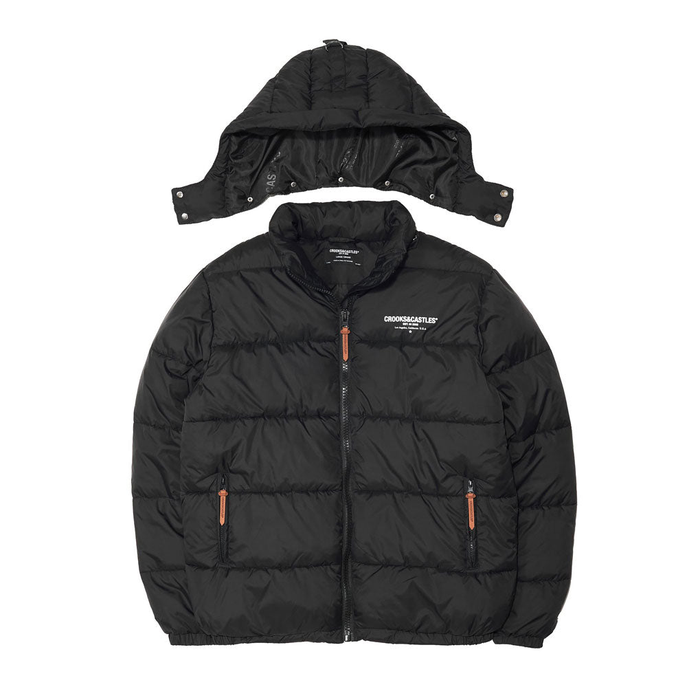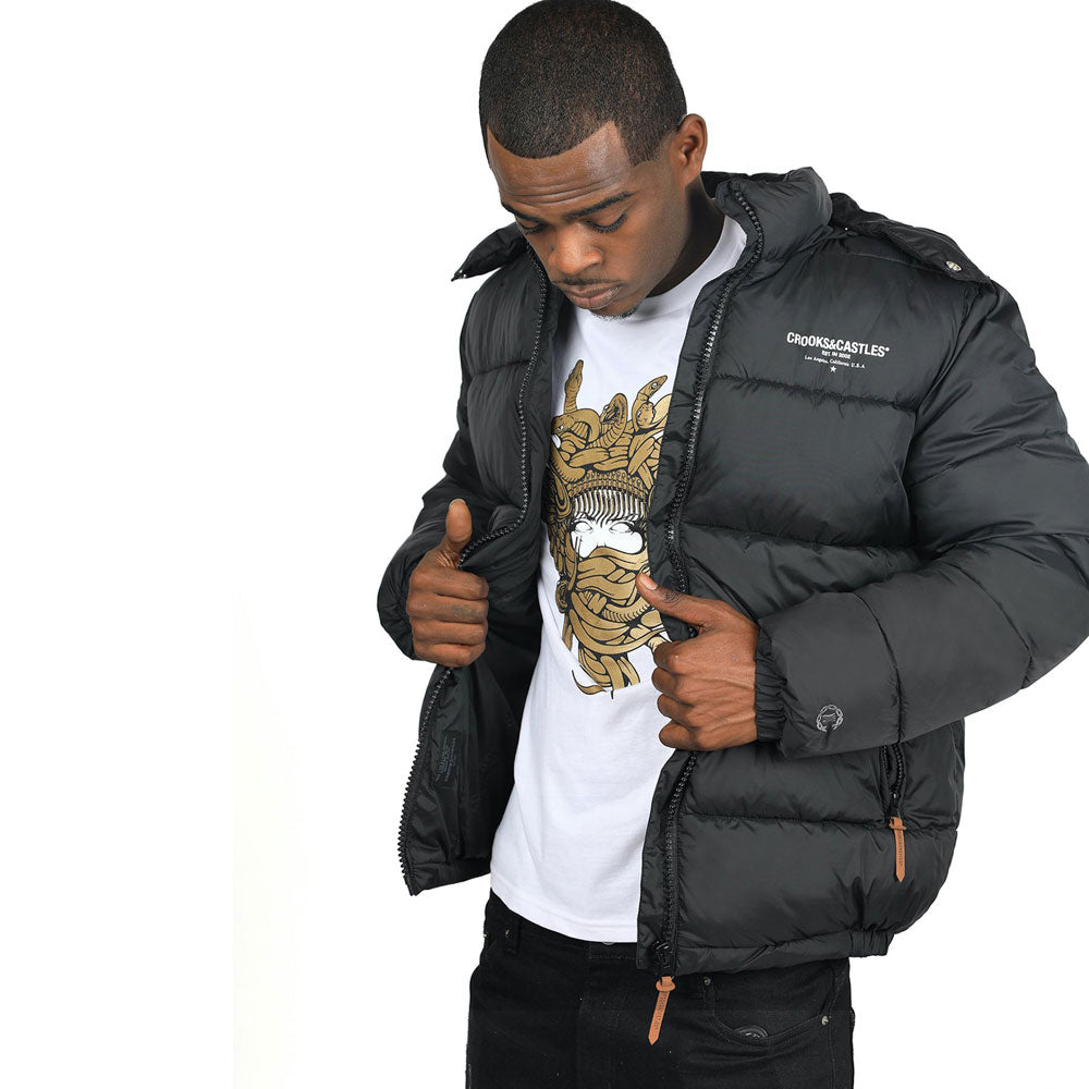 The Crooks & Castles New Core Puffer Jacket has a removable hood, two side pockets, front zip closure and small chest embroidery. This lightweight puffer also features elastic hem storm cuffs for added warmth.