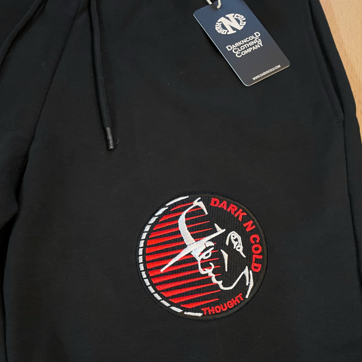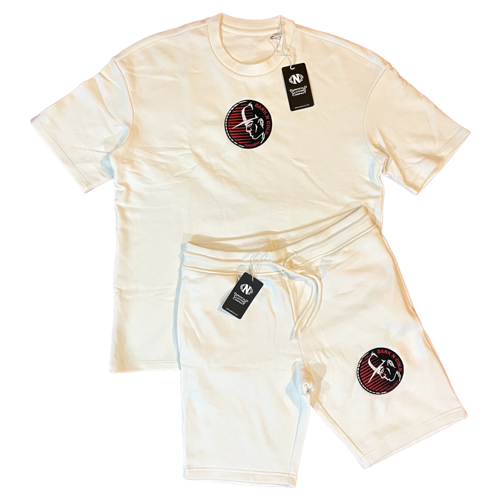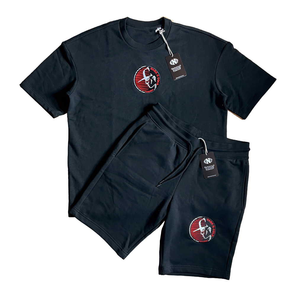 The Darkncold Capman II Organic Shorts and T-Shirt Set features a full embroidery logo to the centre T-shirt chest and one to the left Shorts thigh.