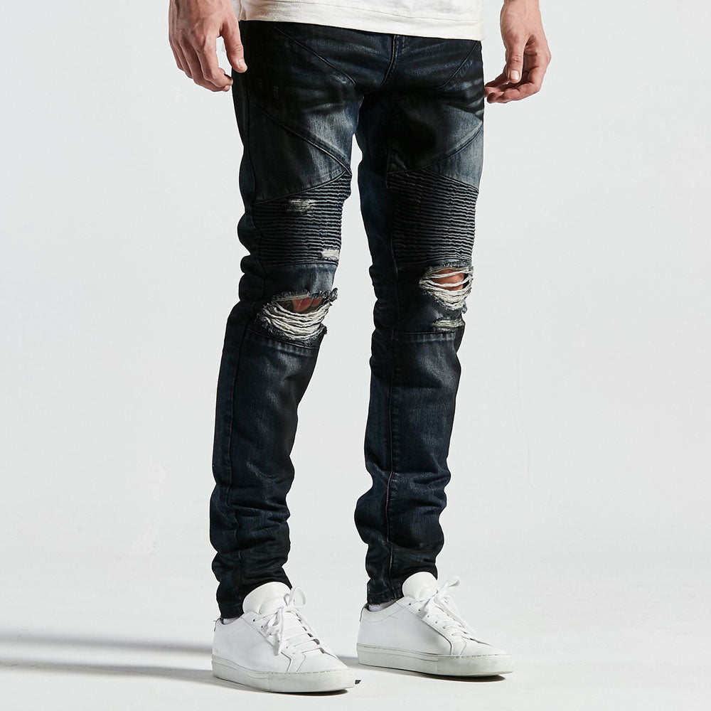 Embellish Jeans are leading the way when it comes to, ripped and distressed Biker Pants. Their collection of expertly washed denim is impressive. The NYC based denim company specialises in quality slim fit jeans influenced by Japanese workwear. Fabric content: 98 percent cotton, 2 percent spandex. Inseam: 34 inches