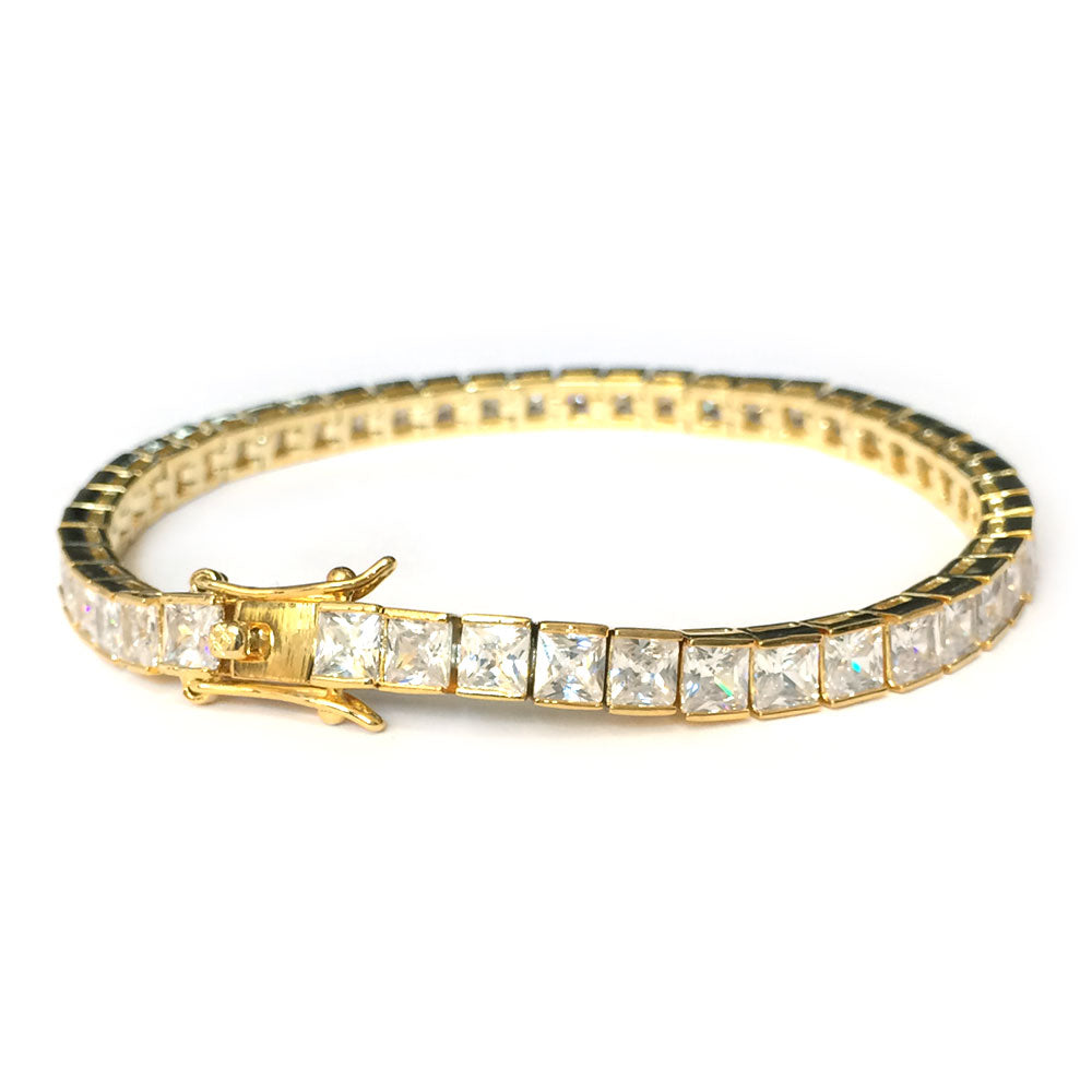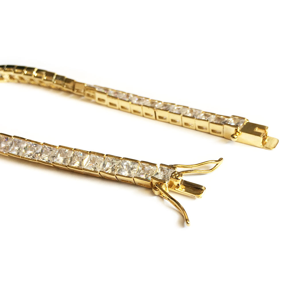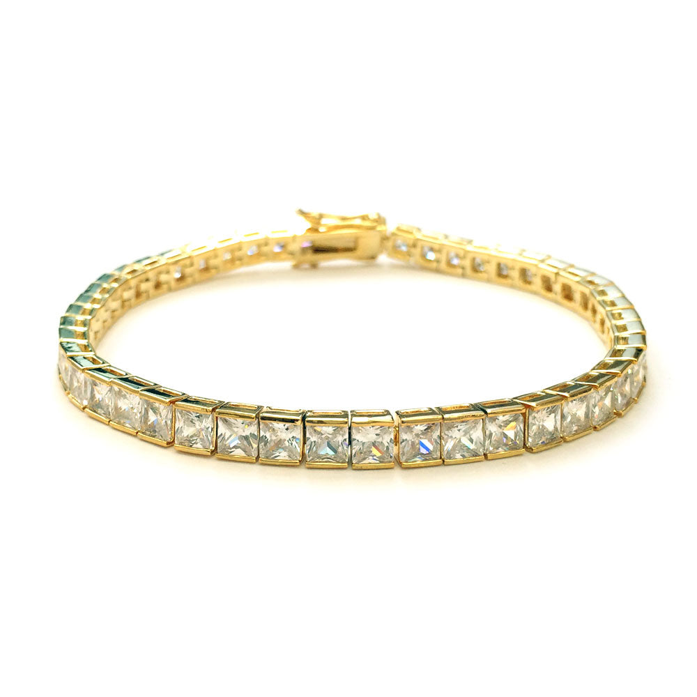 Tennis Bracelet Gold Plated CZ Square Cut 4mm x 8 inches