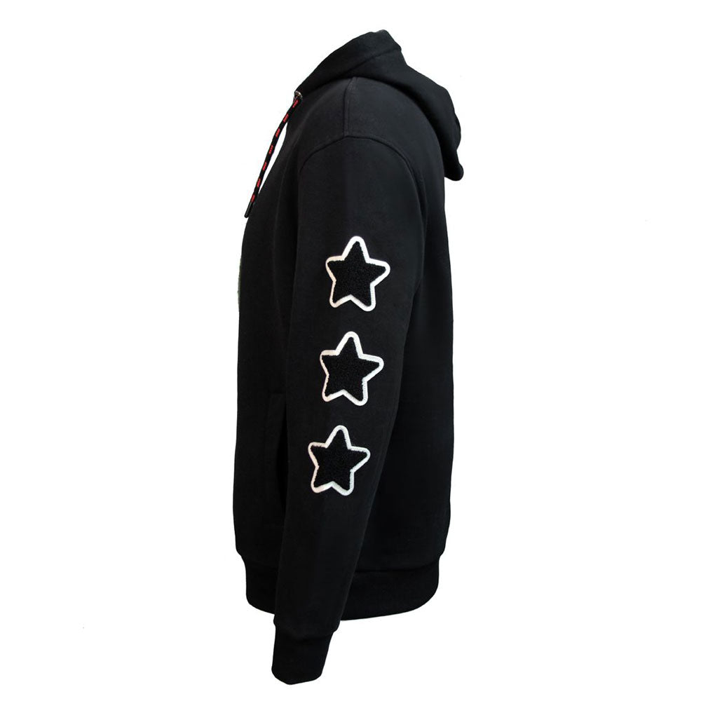 Graphic printed hoodie. Fabric content 80 percent cotton, 20 percent polyester