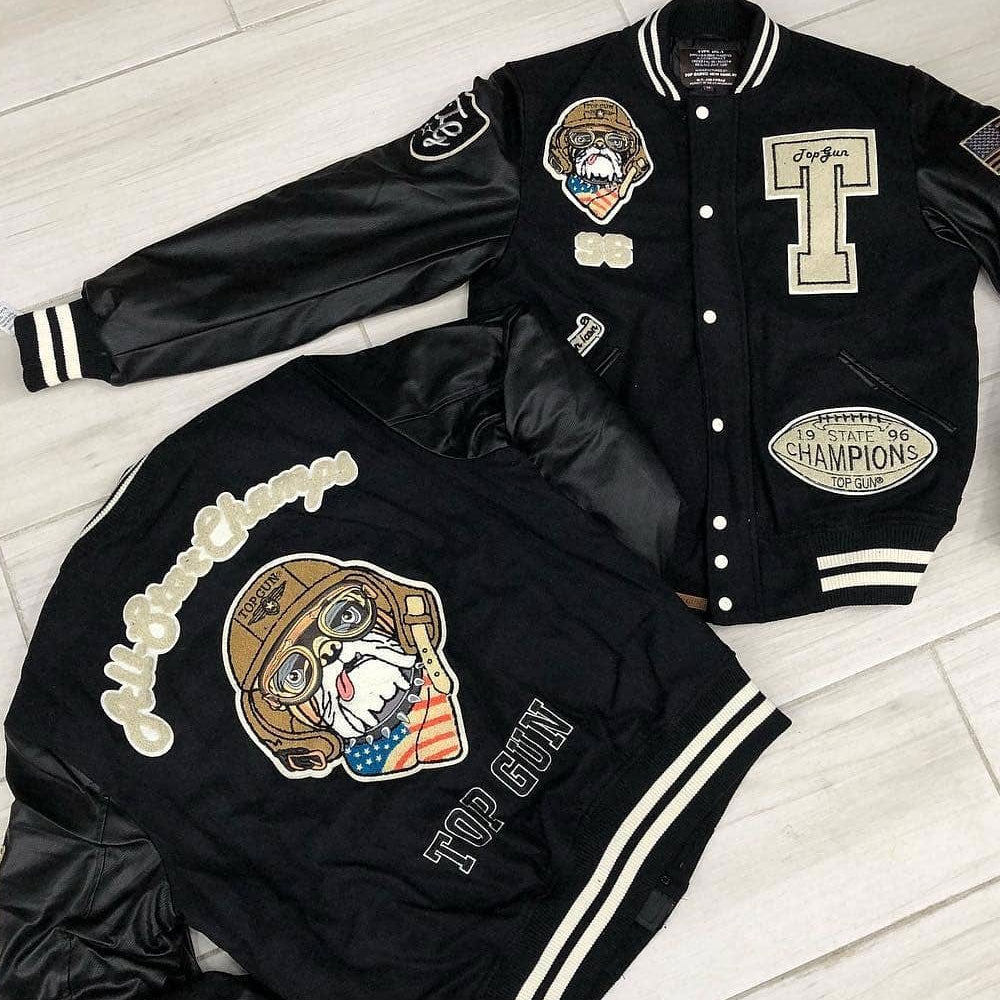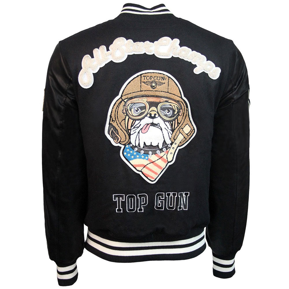 Top Gun Wool Leather Top Dog Varsity Bomber Jacket