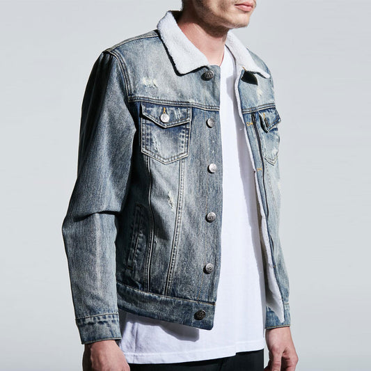 Embellish Fleece Lined Denim Jacket Vintage Wash