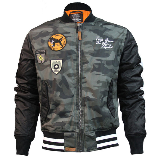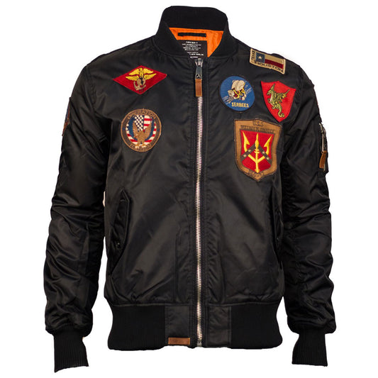 Top Gun MA 1 Nylon Bomber Jacket with Patches Black